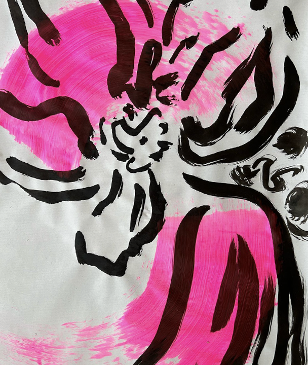 Com um pincel volumoso e um papel de dois metros de comprimento o que estava em jogo não era precisão, nem perfeição, mas sim a alma.