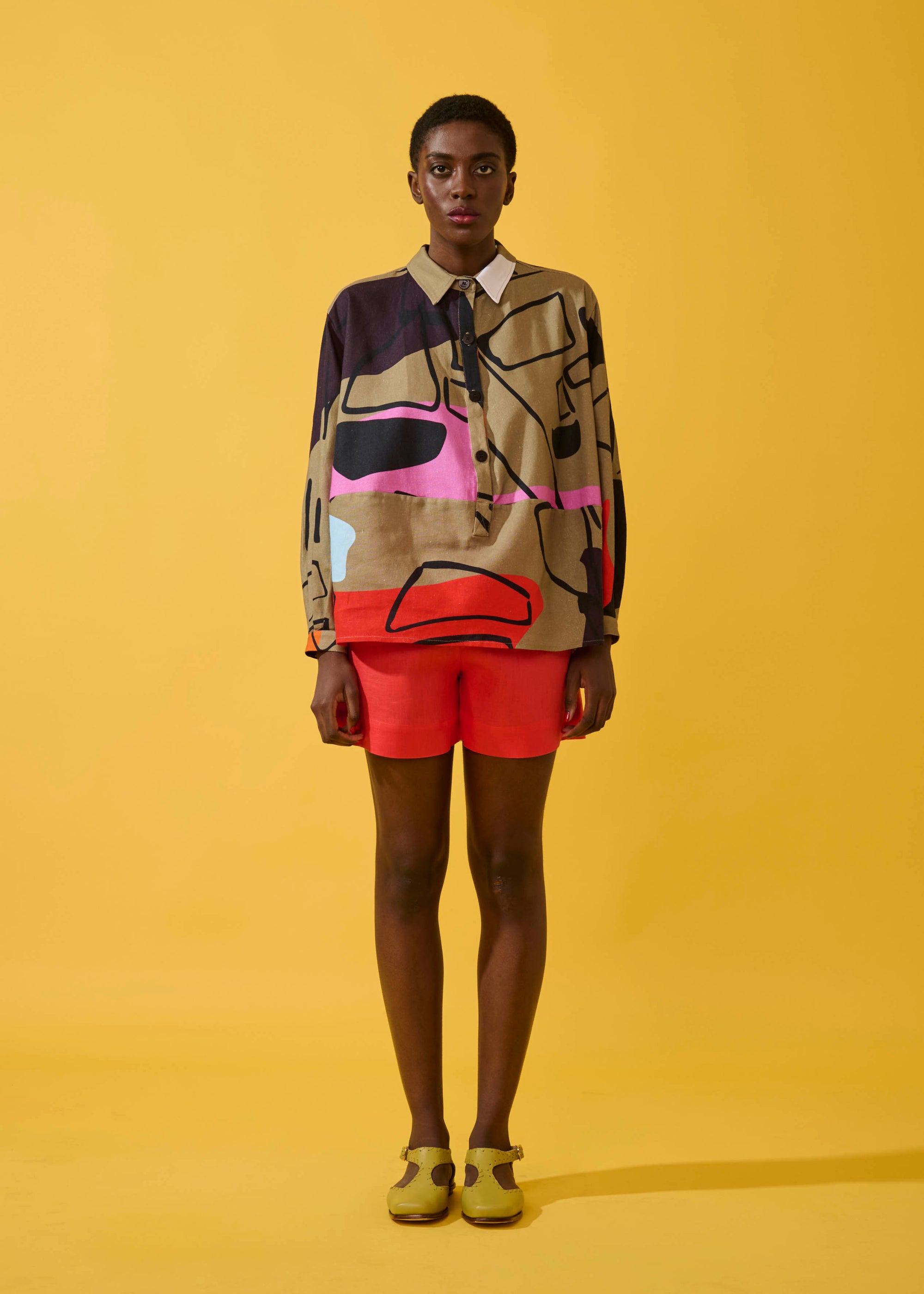 Camisa Manga Curta Linho Estampado