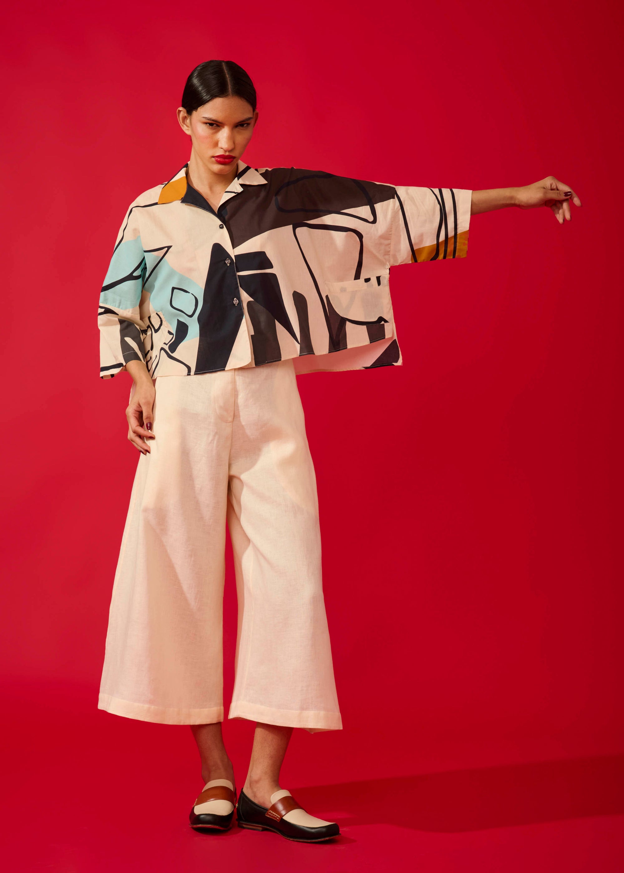 Cropped India Linho Estampado
